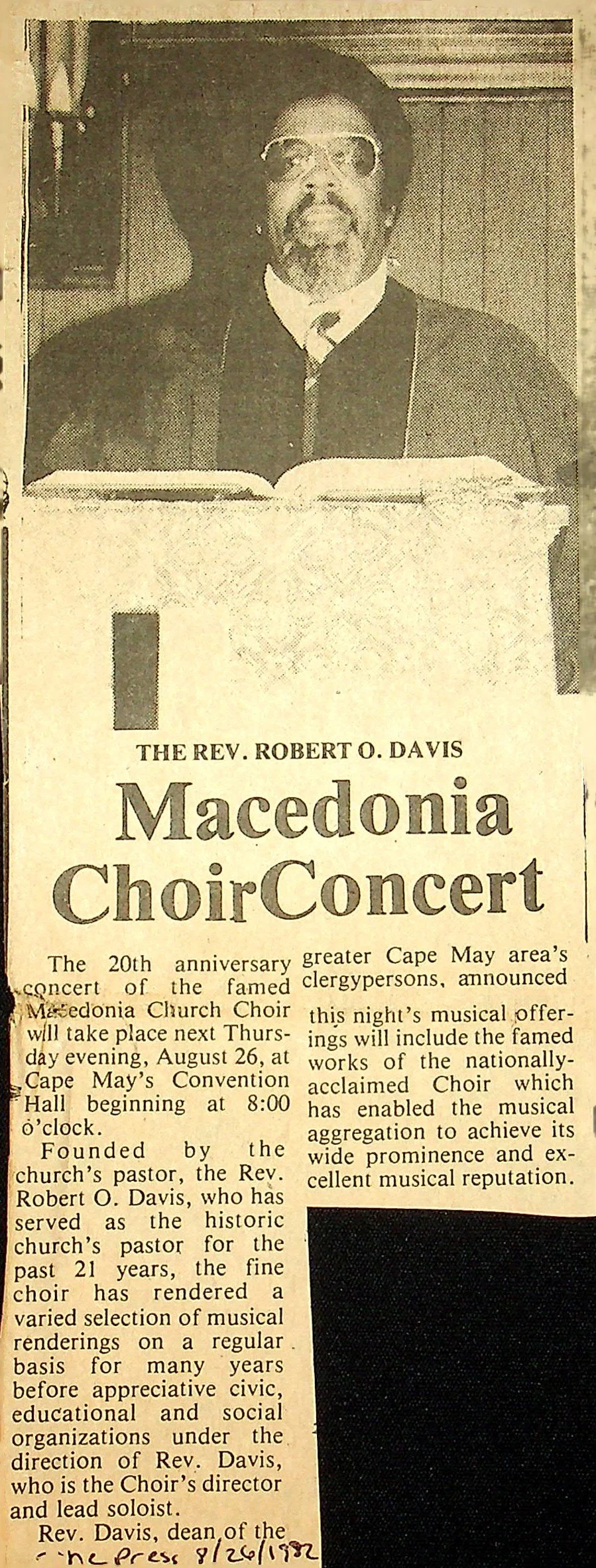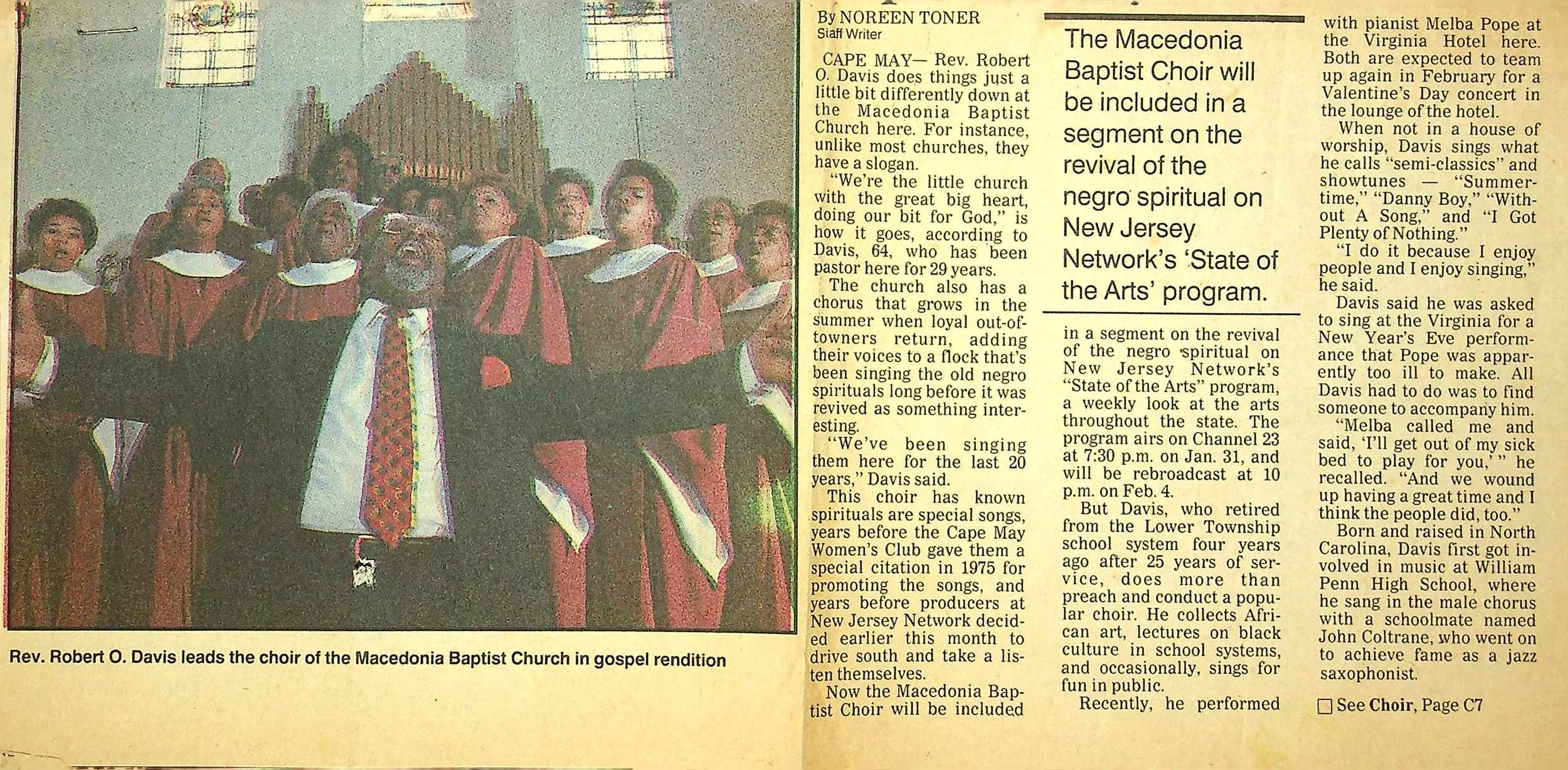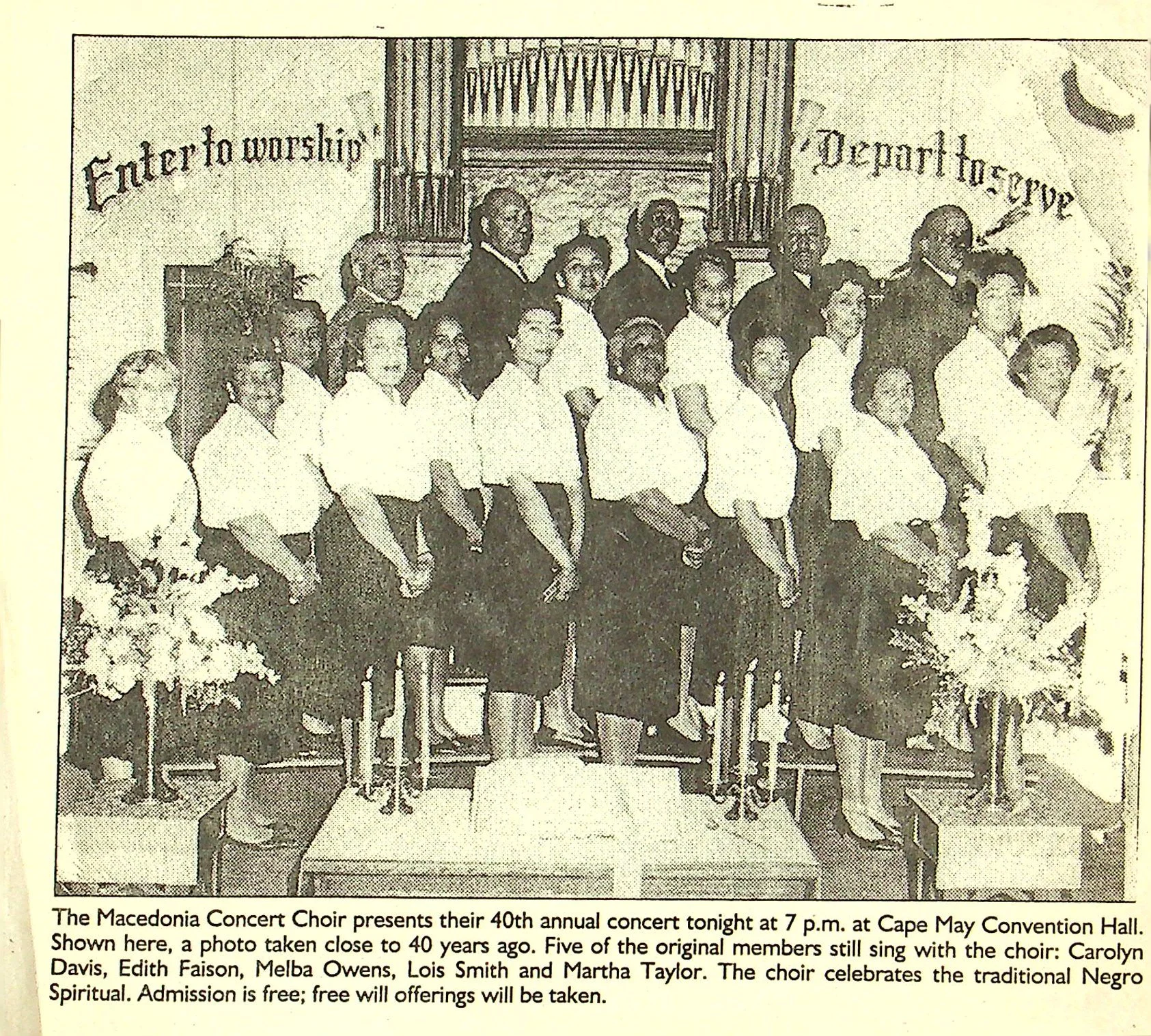 In January, 2024 the Historic Macedonia Baptist Church of Cape May received a Cape May County Division of History regrant award to research and give presentations on the three black churches and the role of the Negro Spirituals in Cape May, New Jersey.