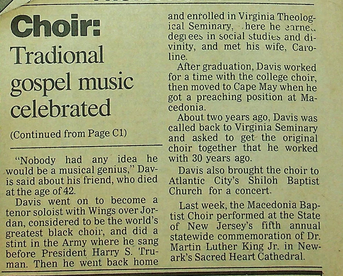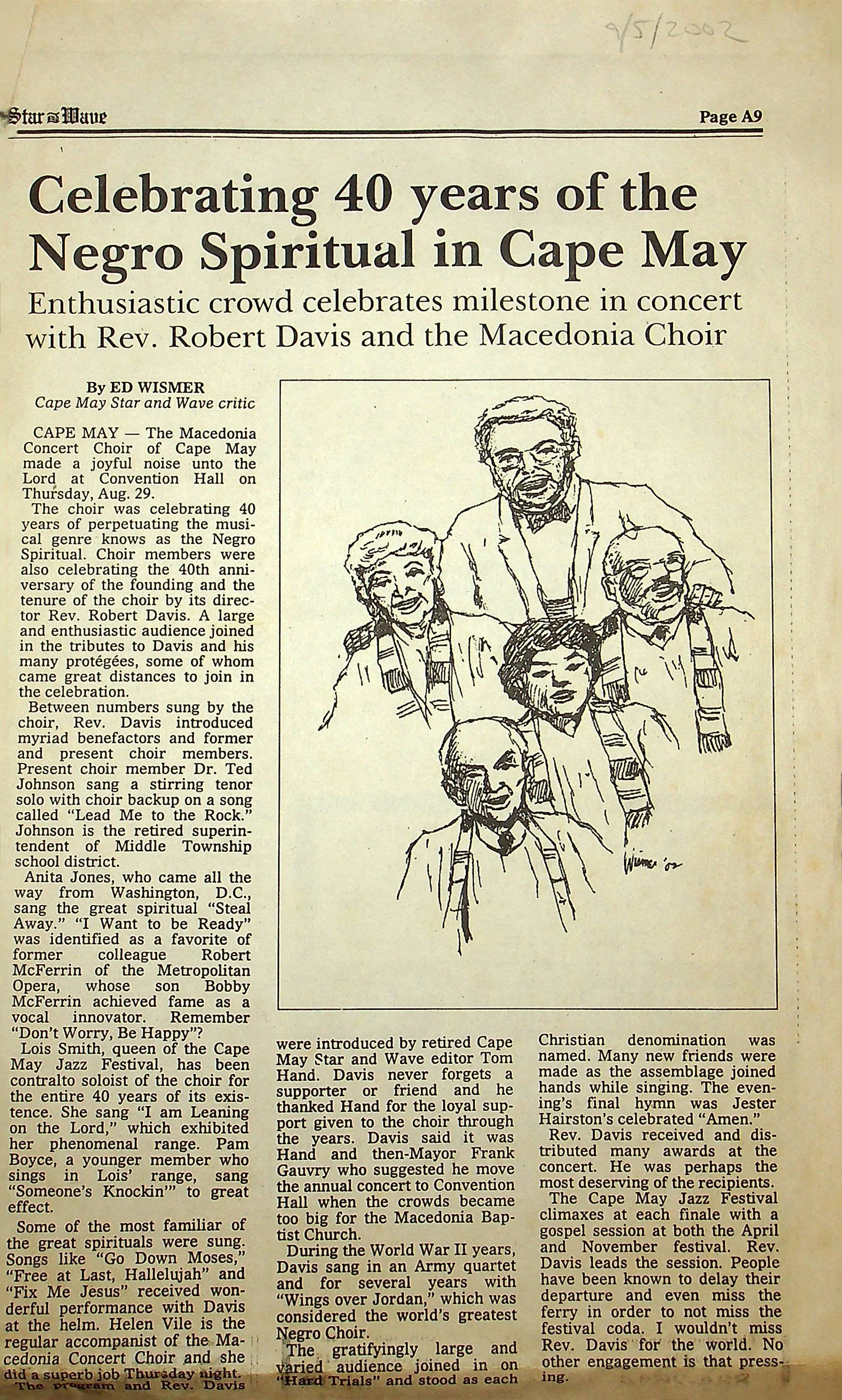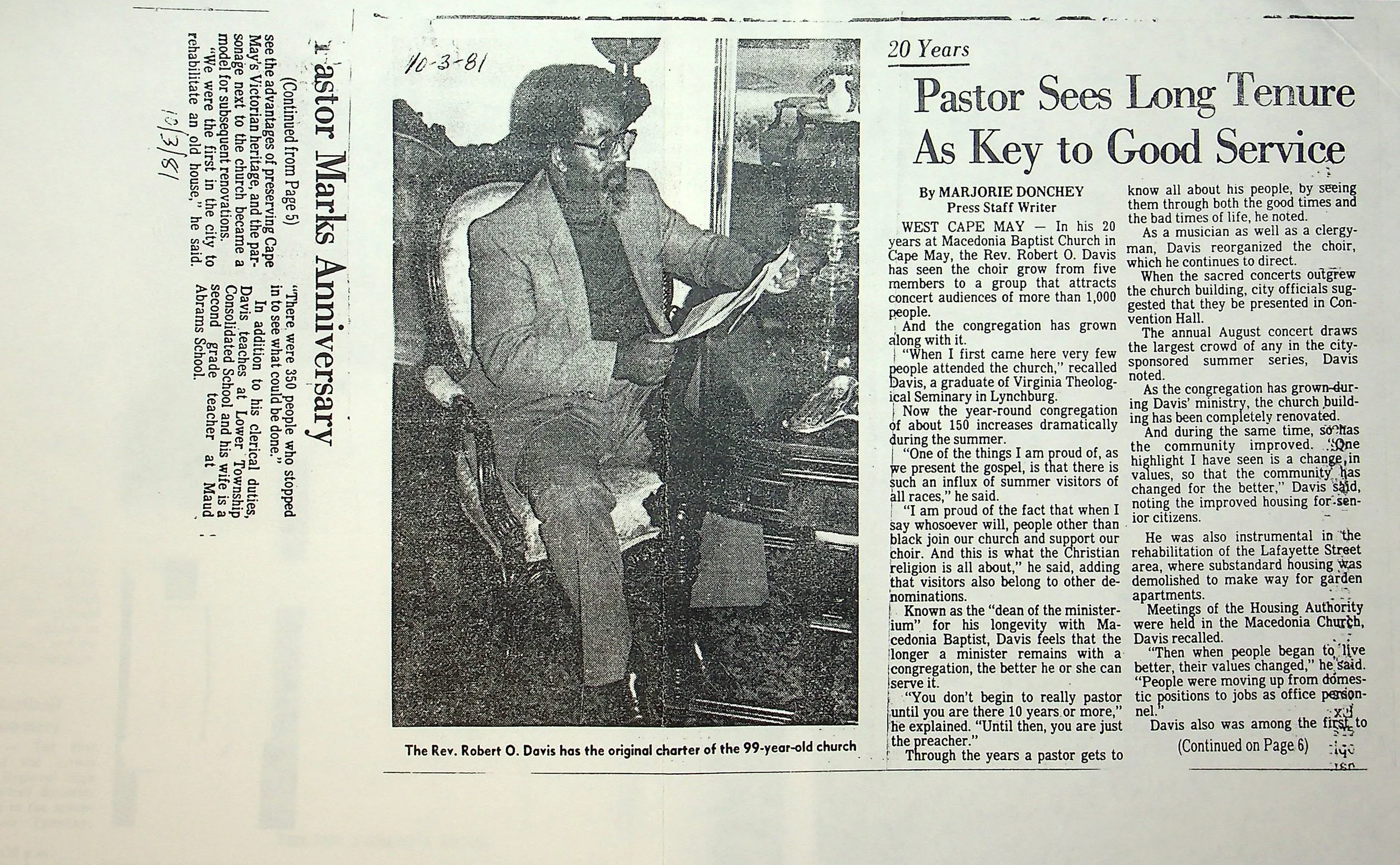 In January, 2024 the Historic Macedonia Baptist Church of Cape May received a Cape May County Division of History regrant award to research and give presentations on the three black churches and the role of the Negro Spirituals in Cape May, New Jersey.